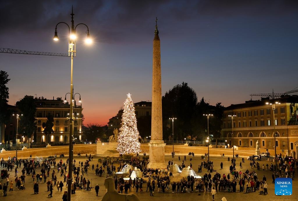 People gather at Piazza del Popolo in Rome, Italy, Dec. 13, 2025. (Xinhua/Li Jing)