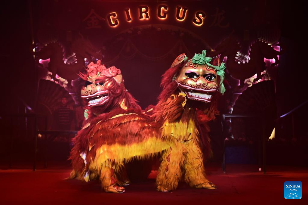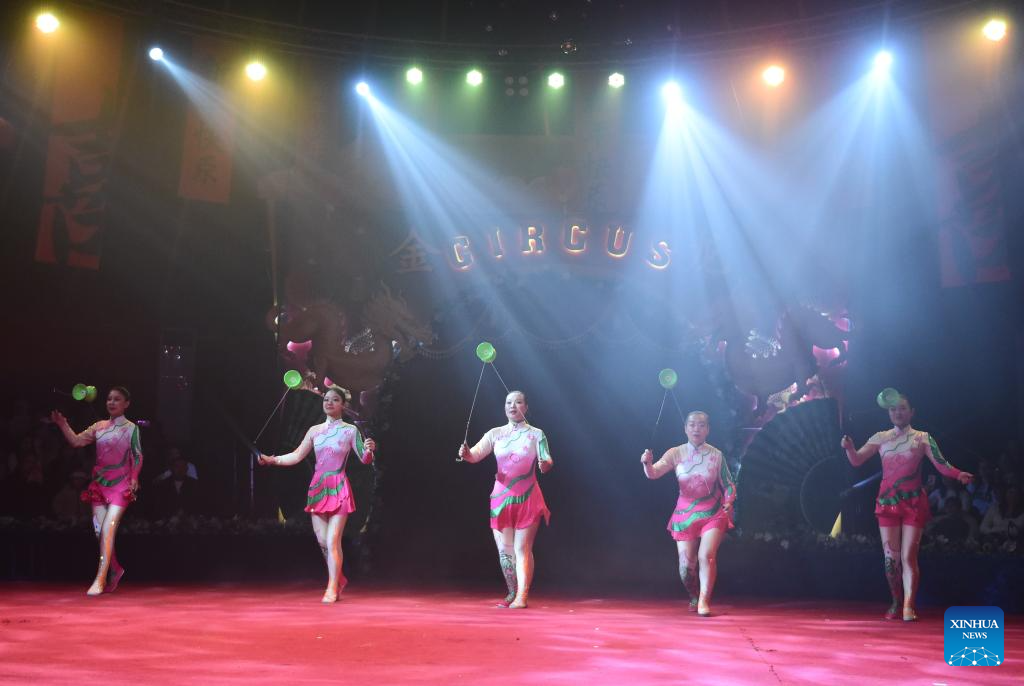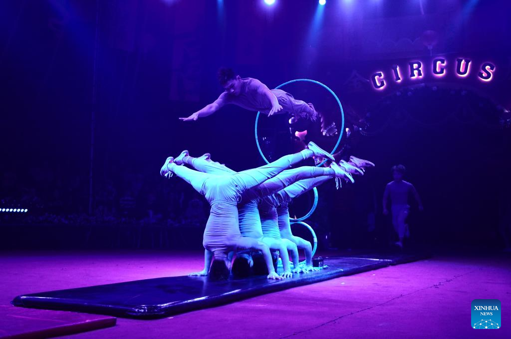 A performance is staged by China's Liaocheng Acrobatic Troupe in Baku, Azerbaijan, Dec. 13, 2025.
