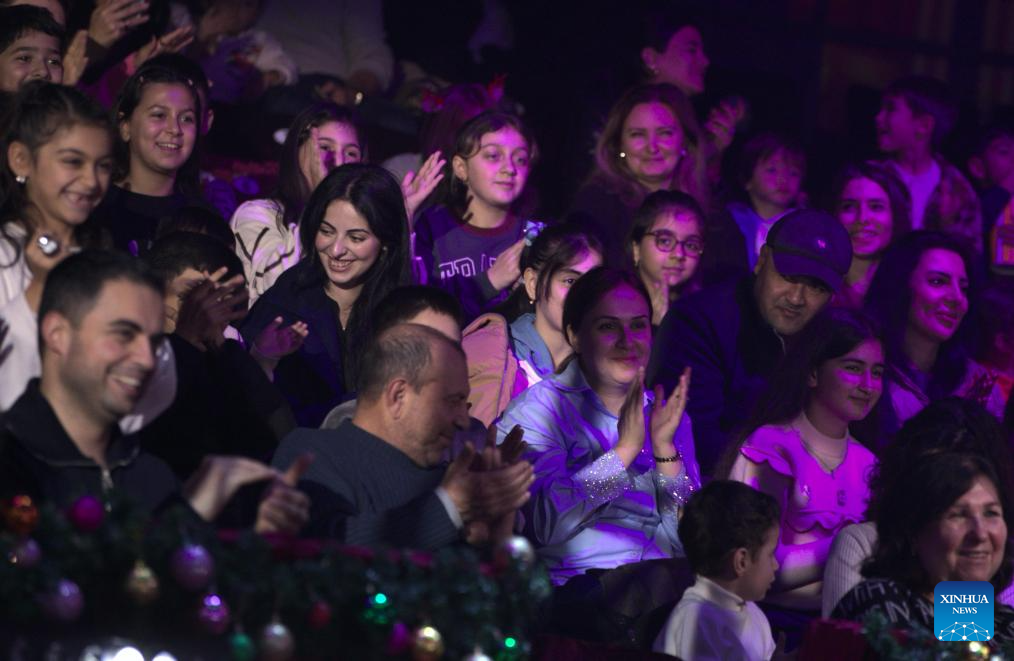 Audience watch a performance staged by China's Liaocheng Acrobatic Troupe in Baku, Azerbaijan, Dec. 13, 2025.