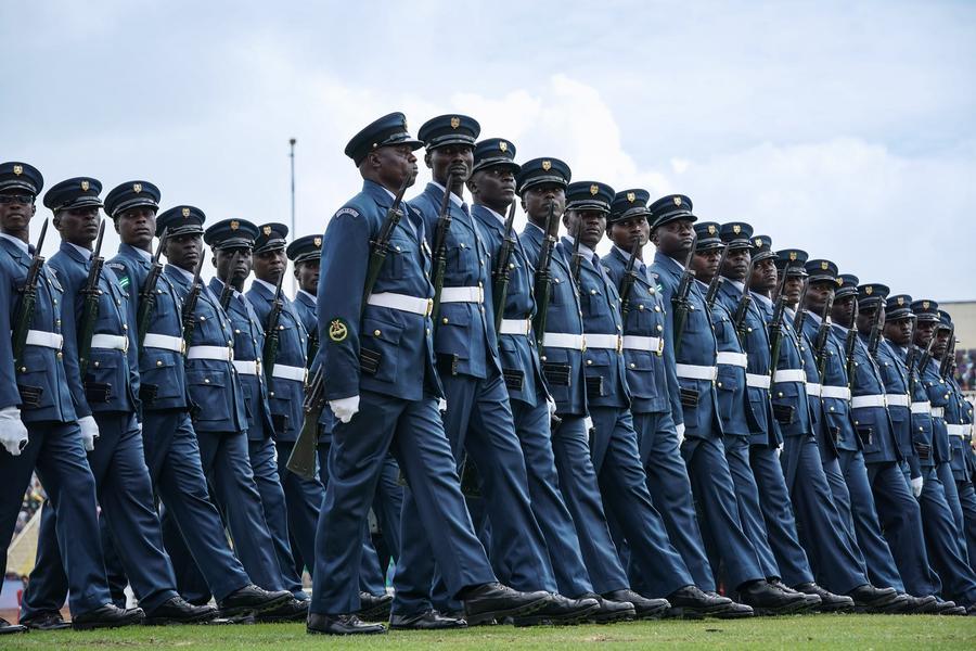 Soldiers march in a parade marking the 62nd anniversary of Kenya's independence in Nairobi, Kenya, Dec. 12, 2025. (Xinhua/Han Xu)