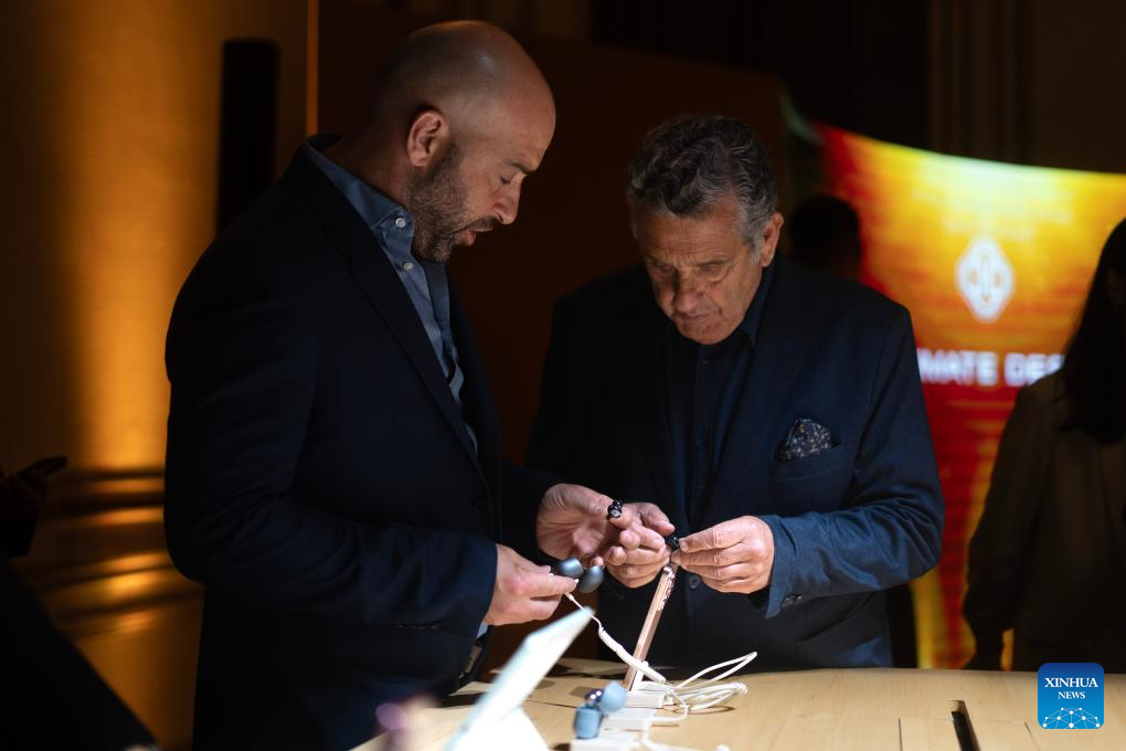 People visit the Huawei product launch event in Buenos Aires, Argentina, Dec. 15, 2025. Chinese tech giant Huawei launched a series of new cellphones and equipment on Monday in Buenos Aires, marking its return to the Argentine smartphone market after six years. (Photo by Martin Zabala/Xinhua)
