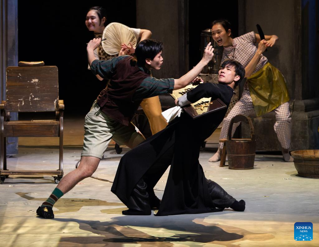 Actors attend a rehearsal of the dance drama Wing Chun during a media day event in Toronto, Canada, on Dec. 15, 2025. The Chinese dance drama will be staged here from Dec. 16, 2025 to Jan. 4, 2026. (Photo by Zou Zheng/Xinhua)