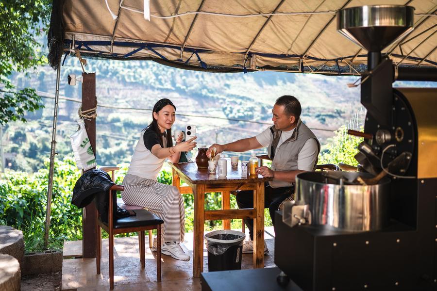 "I grew up here, and love Gaoligong Mountains," said Li. The Gaoligong Mountains, where fertile soil, ideal temperatures and abundant sunlight situate it within the global coffee-growing belt, boast small-bean coffee. "It is my unwavering commitment to promote local small-bean coffee," added Li.