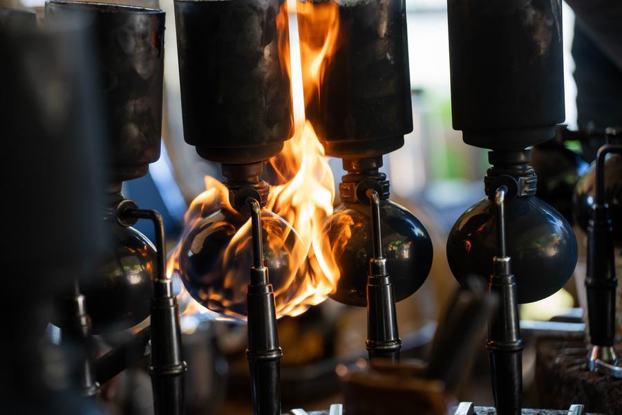 His "flame-brewed coffee", which made by a blowtorch to heat beneath siphon pots, has taken the Internet by storm for its originality, turning his cafe into a viral sensation.