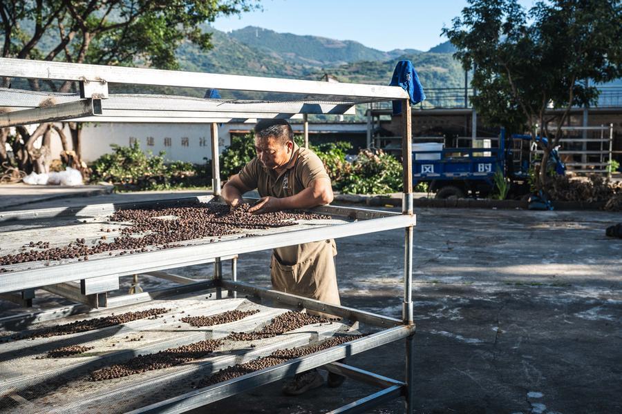 Li Jinhe makes coffee at his cafe in Mangkuan Township of Baoshan City, southwest China's Yunnan Province, Nov. 15, 2025. (Xinhua/Wang Guansen)Li Jinhe works at a coffee bean processing workshop in Tangxi Village of Mangkuan Township, Baoshan City, southwest China's Yunnan Province, Nov. 15, 2025. (Xinhua/Gao Yongwei)Li Jinhe makes coffee at his cafe in Mangkuan Township of Baoshan City, southwest China's Yunnan Province, Nov. 15, 2025. (Xinhua/Gao Yongwei)