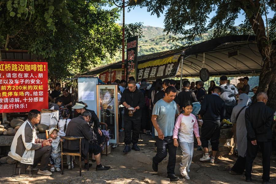 An aerial drone photo taken on Nov. 15, 2025 shows the Shuanghong bridge, beside which Li Jinhe's cafe is located, in Mangkuan Township of Baoshan City, southwest China's Yunnan Province. (Xinhua/Gao Yongwei)Li Jinhe dries coffee beans in Tangxi Village of Mangkuan Township, Baoshan City, southwest China's Yunnan Province, Nov. 15, 2025. (Xinhua/Wang Guansen)This photo taken on Nov. 15, 2025 shows a cafe run by Li Jinhe in Mangkuan Township of Baoshan City, southwest China's Yunnan Province. (Xinhua/Wang Guansen)Staff members make coffee at a cafe run by Li Jinhe in Mangkuan Township of Baoshan City, southwest China's Yunnan Province, Nov. 15, 2025. (Xinhua/Wang Guansen)