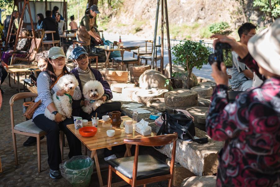 A customer takes a selfie at a cafe run by Li Jinhe in Mangkuan Township of Baoshan City, southwest China's Yunnan Province, Nov. 15, 2025. (Xinhua/Wang Guansen)