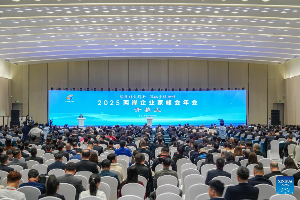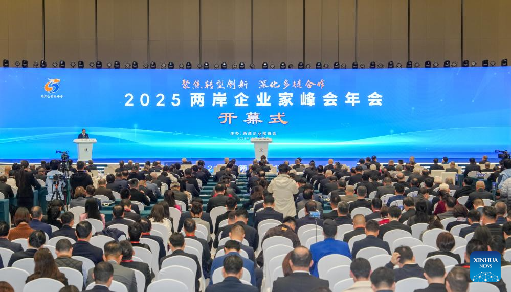 This photo shows the opening of the 2025 annual conference of the Cross-Strait CEO Summit in Nanjing, east China's Jiangsu Province, Dec. 16, 2025. The 2025 annual conference of the Cross-Strait CEO Summit opened here Tuesday. About 800 people from the Chinese mainland and Taiwan gathered on Tuesday in Nanjing to discuss cross-Strait industrial transformation, innovation and cooperation. (Xinhua/Li Bo)