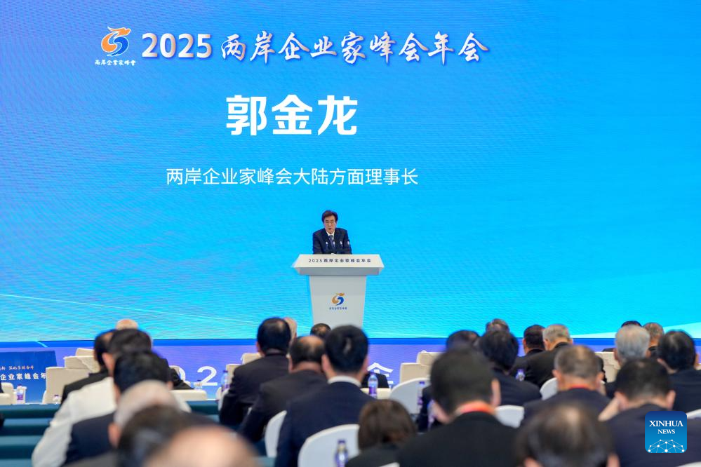 Guo Jinlong, president of the Chinese mainland side of the Cross-Strait CEO Summit, addresses the opening ceremony of the 2025 annual conference of the summit in Nanjing, east China's Jiangsu Province, Dec. 16, 2025. The 2025 annual conference of the Cross-Strait CEO Summit opened here Tuesday. About 800 people from the Chinese mainland and Taiwan gathered on Tuesday in Nanjing to discuss cross-Strait industrial transformation, innovation and cooperation. (Xinhua/Li Bo)