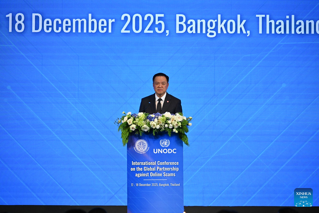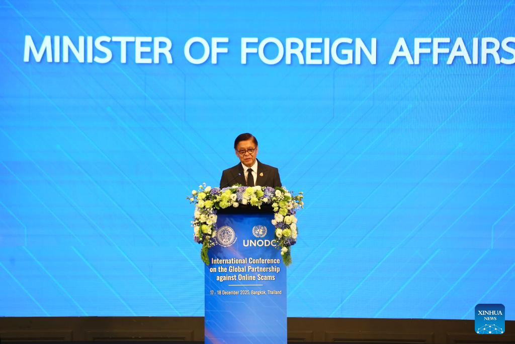 The International Conference on the Global Partnership against Online Scams is held in Bangkok, Thailand, Dec. 17, 2025. The International Conference on the Global Partnership against Online Scams commenced here on Wednesday, aiming to forge a more coordinated response and strengthen cooperation in combating transnational crimes. (Xinhua/Sun Weitong)