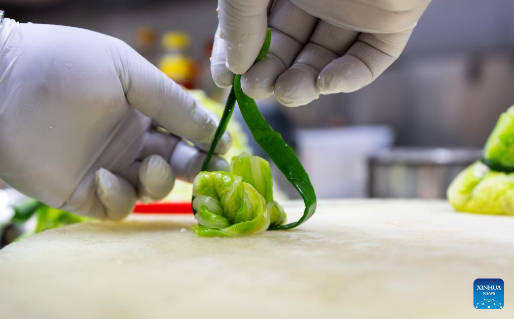 A chef prepares tofu banquet at a restaurant in Jian'ge County of Guangyuan City, southwest China's Sichuan Province, Dec. 13, 2025.