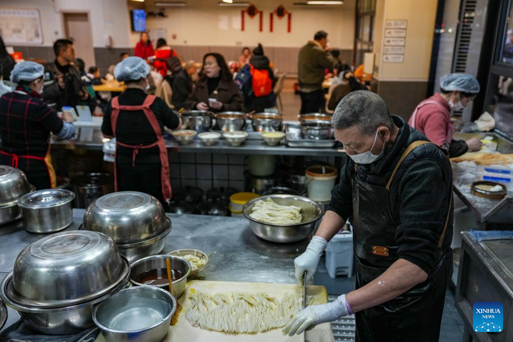 A chef prepares cold noodles at a restaurant in Guangyuan City, southwest China's Sichuan Province, Dec. 12, 2025. (Xinhua/Huang Wei)