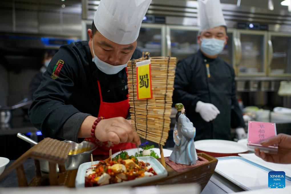 A chef prepares tofu banquet at a restaurant in Jian'ge County of Guangyuan City, southwest China's Sichuan Province, Dec. 13, 2025. (Xinhua/Zhang Xiaoyu)