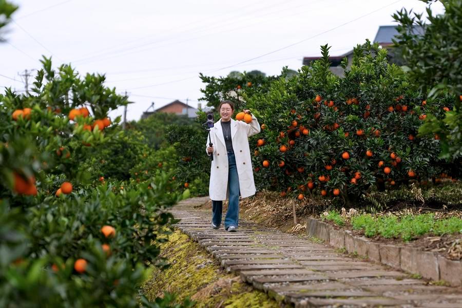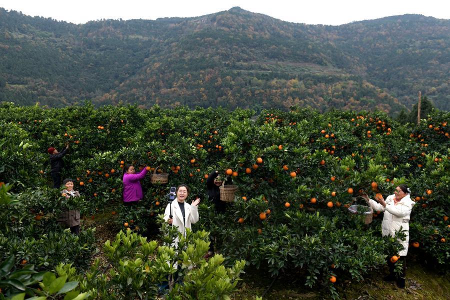 Zhang Guihua (L, front), Party secretary of Sunzigou Village, promotes oranges via live-streaming at an orchard in Cangxi County of Guangyuan City, southwest China's Sichuan Province, Dec. 12, 2025. (Xinhua/Guo Xulei)Zhang Guihua, Party secretary of Sunzigou Village, picks oranges at an orchard in Sunzigou Village in Cangxi County of Guangyuan City, southwest China's Sichuan Province, Dec. 12, 2025. (Xinhua/Zhang Long)Zhang Guihua, Party secretary of Sunzigou Village, promotes oranges via live-streaming at an orchard in Cangxi County of Guangyuan City, southwest China's Sichuan Province, Dec. 12, 2025. (Xinhua/Guo Xulei)Zhang Guihua, Party secretary of Sunzigou Village, promotes oranges via live-streaming at an orchard in Cangxi County of Guangyuan City, southwest China's Sichuan Province, Dec. 12, 2025. (Xinhua/Xie Han)Zhang Guihua, Party secretary of Sunzigou Village, promotes oranges via live-streaming at an orchard in Cangxi County of Guangyuan City, southwest China's Sichuan Province, Dec. 12, 2025. (Xinhua/Zhang Long)Villagers present newly harvested oranges at Sunzigou Village in Cangxi County of Guangyuan City, southwest China's Sichuan Province, Dec. 12, 2025. (Xinhua/Xu Hongyan)Zhang Guihua (1st R), Party secretary of Sunzigou Village, promotes oranges via live-streaming with villagers at an orchard in Cangxi County of Guangyuan City, southwest China's Sichuan Province, Dec. 12, 2025. (Xinhua/Xu Hongyan)Zhang Guihua, Party secretary of Sunzigou Village, with gears for live-streaming in hand, walks inside an orchard in Cangxi County of Guangyuan City, southwest China's Sichuan Province, Dec. 12, 2025. (Xinhua/Sun Fanyue)Xie Aijun, Party secretary of Xinghua Village, presents local produce before a live-streaming session at a digital industrial park in Cangxi County of Guangyuan City, southwest China's Sichuan Province, Dec. 12, 2025. (Xinhua/Sun Fanyue)Xie Aijun, Party secretary of Xinghua Village, promotes local produce via live-streaming at a digital industrial park in Cangxi County of Guangyuan City, southwest China's Sichuan Province, Dec. 12, 2025. (Xinhua/Sun Fanyue)Xie Aijun, Party secretary of Xinghua Village, promotes local produce via live-streaming at a "Party secretary studio for rural development" in Cangxi County of Guangyuan City, southwest China's Sichuan Province, Dec. 12, 2025. (Xinhua/Xu Hongyan)Xie Aijun, Party secretary of Xinghua Village, presents local produce at a "Party secretary studio for rural development" in Cangxi County of Guangyuan City, southwest China's Sichuan Province, Dec. 12, 2025. (Xinhua/Xie Han)Xie Aijun, Party secretary of Xinghua Village, promotes local produce via live-streaming at a "Party secretary studio for rural development" in Cangxi County of Guangyuan City, southwest China's Sichuan Province, Dec. 12, 2025. (Xinhua/Zhang Long)■