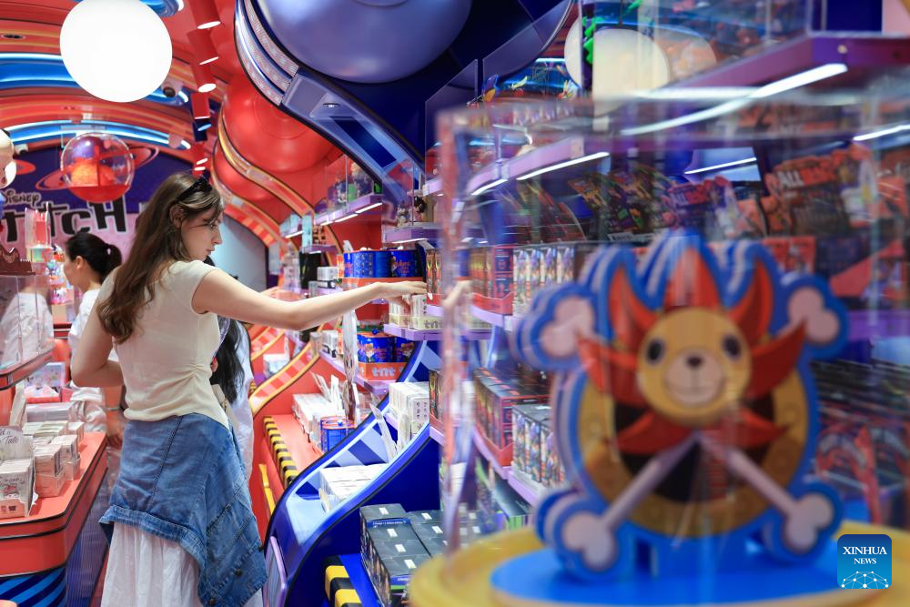 The country's designer toy market, valued at roughly 60 billion yuan (about 8.52 billion U.S. dollars) in 2023, is projected to reach 110.1 billion yuan by 2026, with annual growth rate exceeding 20 percent. (Xinhua/Huo Siying)