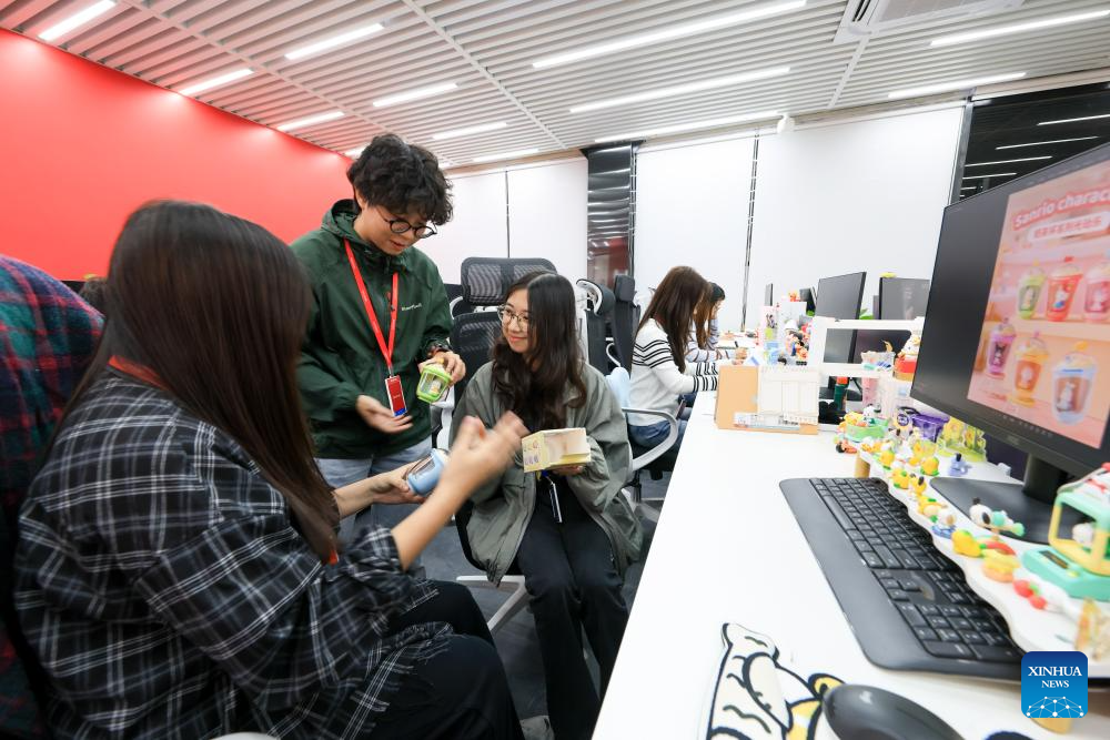 Staff members work at the headquarters of All For Play, a trendy toy brand, in Guangzhou, south China's Guangdong Province, Oct. 28, 2025.