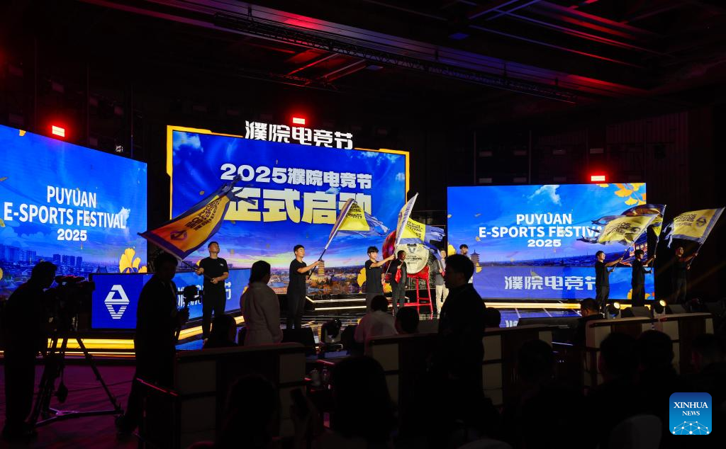 This photo taken on Dec. 20, 2025 shows the opening ceremony for the Puyuan E-sports Festival 2025 in Tongxiang, east China's Zhejiang Province. The festival kicked off here on Saturday and will last until Dec. 28. (Xinhua/Xu Yu)