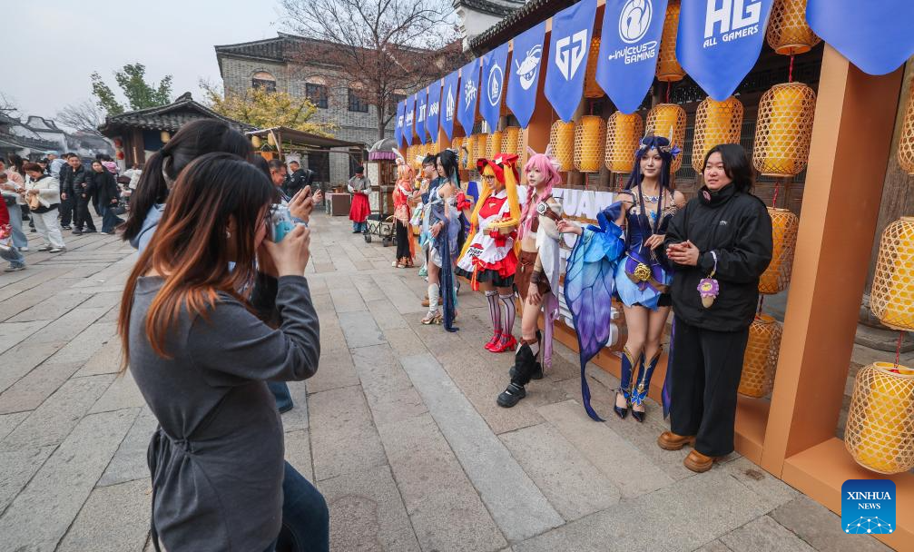 Tourists pose for photos with cosplayers in Tongxiang, east China's Zhejiang Province, Dec. 20, 2025. The festival kicked off here on Saturday and will last until Dec. 28. (Xinhua/Xu Yu)