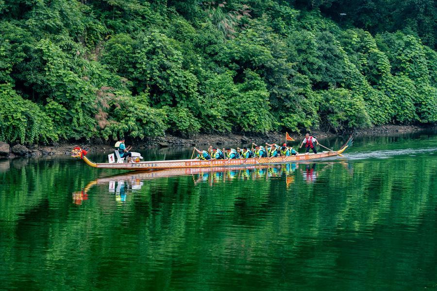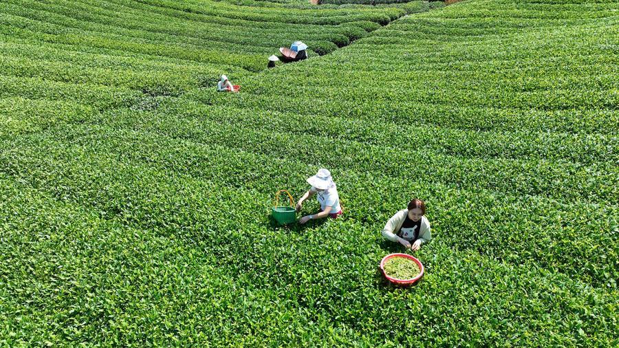 An aerial drone photo taken on Oct. 10, 2025 shows tourists experiencing picking tea leaves at a tea garden in Moganshan Town of Huzhou, east China's Zhejiang Province. (Photo by Xie Shangguo/Xinhua)An aerial drone photo taken on June 17, 2024 shows farmers harvesting butterbur, a herbal plant used as a food ingredient, at Shangqiang Village, Wuxing District of Huzhou, east China's Zhejiang Province. (Photo by He Weiwei/Xinhua)Villagers take part in a dragon boat race in Qiantan Town of Jiande City, east China's Zhejiang Province, June 20, 2023. (Xinhua/Xu Yu)People run along a riverside fitness trail in Jiande City, east China's Zhejiang Province, Aug. 8, 2024. (Photo by Ning Wenwu/Xinhua)
