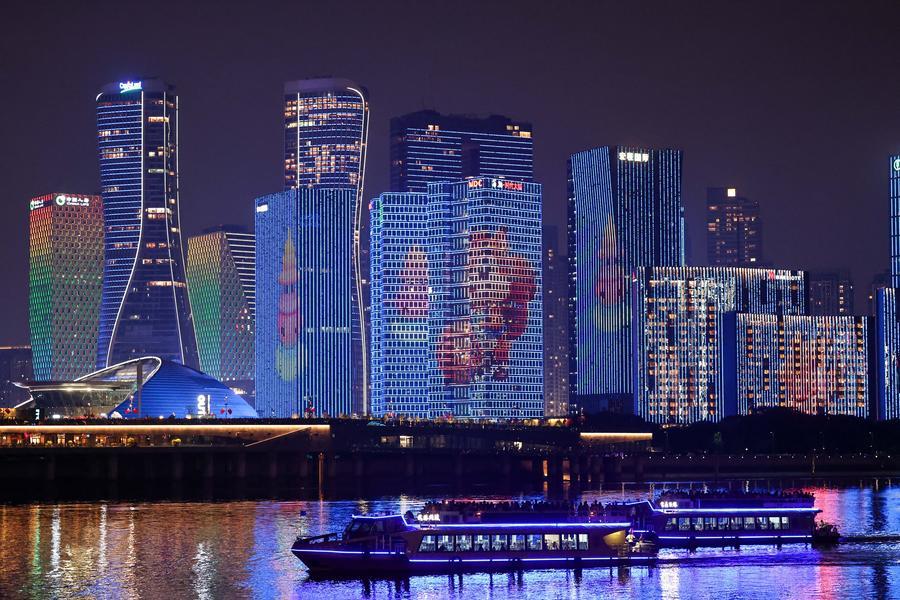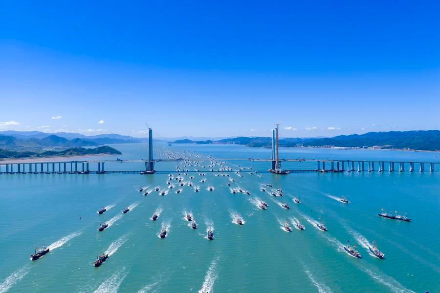 An aerial drone photo taken on July 5, 2025 shows tourists enjoying themselves at a tourist resort in Huzhou City, east China's Zhejiang Province. (Photo by Wu Zheng/Xinhua)An aerial drone photo taken on Sept. 16, 2025 shows fishing boats setting off for operations in the East China Sea after the summer fishing ban, in waters of Ningbo City, east China's Zhejiang Province. (Photo by Zhang Hui/Xinhua)A drone photo taken on Sept. 17, 2024 shows tourists visiting the Shenxianju scenery spot in Taizhou, east China's Zhejiang Province. (Xinhua/Wang Huabin)Tourists take a boat cruise to view the night scenery along the Qiantang River in Hangzhou, east China's Zhejiang Province, Oct. 2, 2025. (Xinhua/Jiang Han)