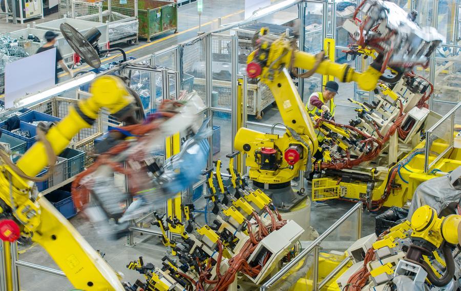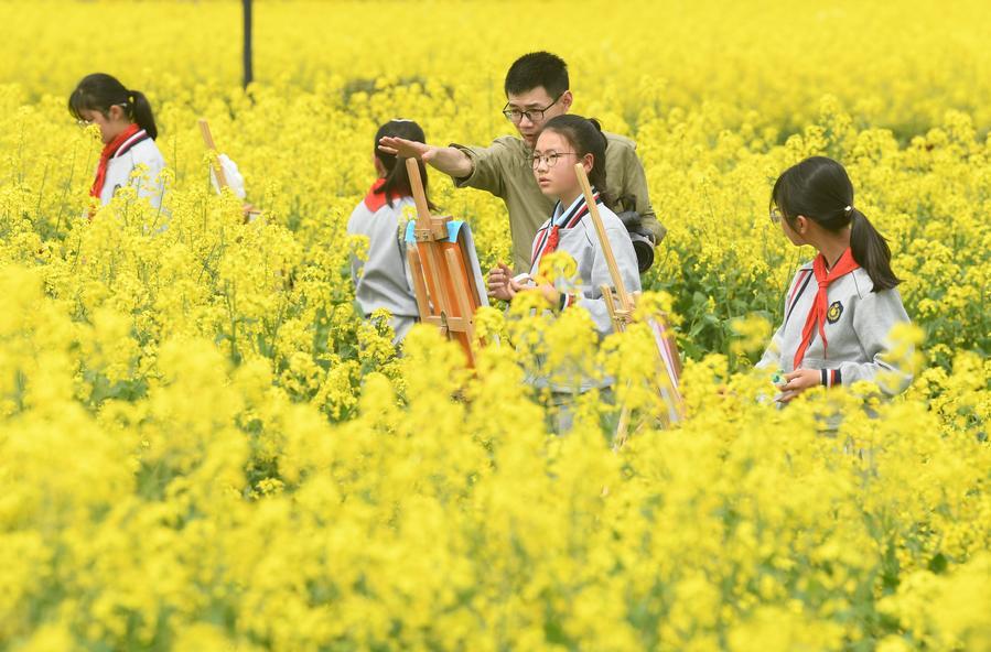Primary school students sketch in a rape flower field in Wuxing District of Huzhou City, east China's Zhejiang Province, March 30, 2024. (Xinhua/Weng Xinyang)A drone photo taken on Oct. 21, 2025 shows harvesters harvesting rice in a paddy field, with a high-speed train in the background, in Hangzhou, east China's Zhejiang Province. (Xinhua/Xu Yu)A drone photo taken on Nov. 7, 2024 shows yellow sorting robots distributing clothing at a smart logistics park of a clothing company in Qianyuan Town of Deqing County in Huzhou City, east China's Zhejiang Province. (Photo by Ni Lifang/Xinhua)A drone photo shows a technician operating industrial robots to manufacture new energy vehicle parts at the workshop of Changxing Ditong Automotive Parts Co., Ltd. in Changxing Economic and Technological Development Zone in Huzhou City, east China's Zhejiang Province, Oct. 9, 2025. (Photo by Tan Yunfeng/Xinhua)