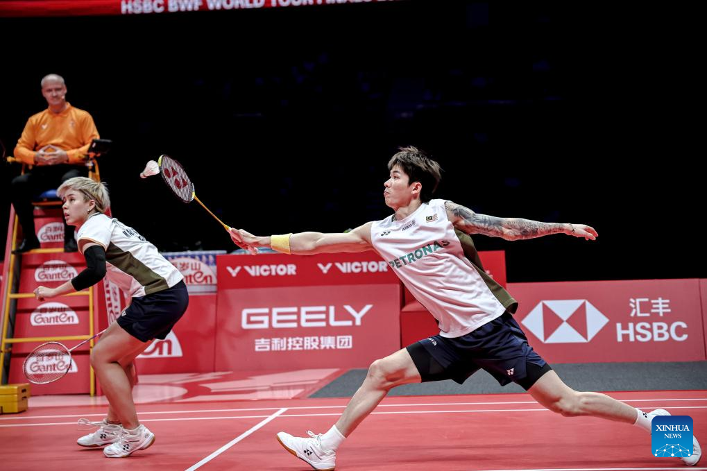 Chen Tang Jie (R)/Toh Ee Wei of Malaysia compete during the mixed doubles semifinal match between Jiang Zhenbang/Wei Yaxin of China and Chen Tang Jie/Toh Ee Wei of Malaysia at BWF World Tour Finals 2025 in Hangzhou, east China's Zhejiang Province, Dec. 20, 2025. (Xinhua/Jiang Han)