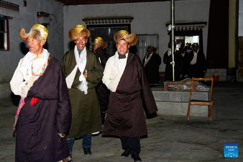 Local residents in Tibetan costumes celebrate the "Gutu Eve" in Khorchak Village, Burang County of Ngari Prefecture, southwest China's Xizang Autonomous Region, Dec. 18, 2025.