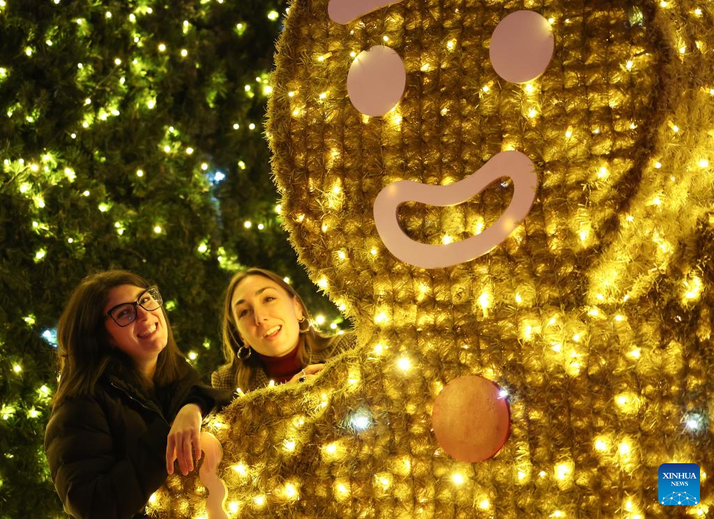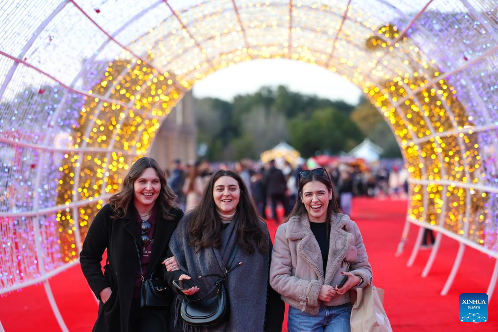People walk through festive lights at Villa Borghese in Rome, Italy, Dec. 20, 2025. The Villa Borghese, an urban park in Rome, has been filled with festive atmosphere as the Christmas approaches. (Xinhua/Li Jing)
