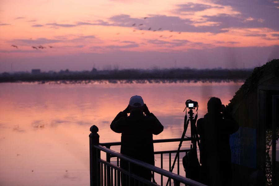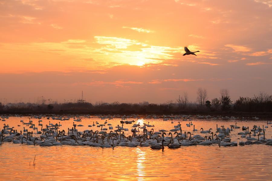YUEYANG, Dec. 21 (Xinhua) -- As an integral part of the Dongting Lake ecological zone, Donggu Lake welcomes a large number of migratory birds every November for wintering.