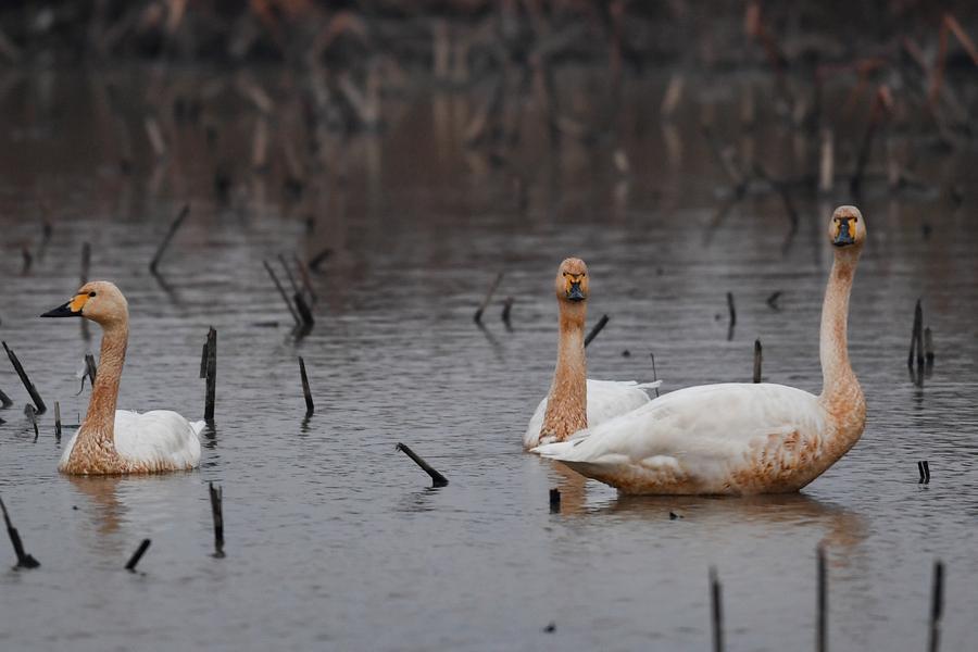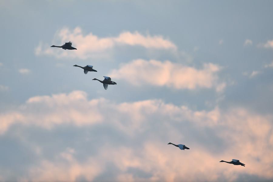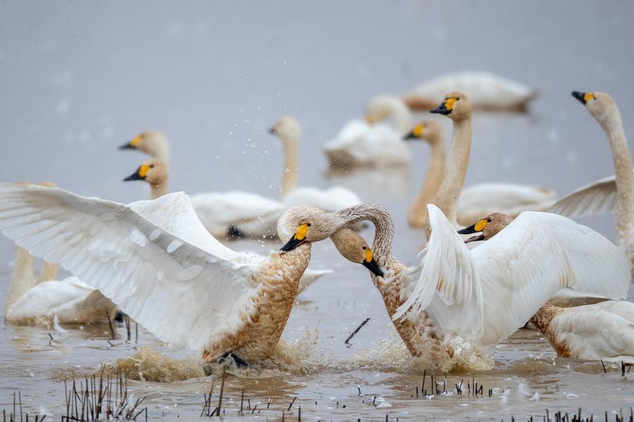 This photo taken on Dec. 4, 2025 shows tundra swans swimming in the Donggu Lake in Yueyang City, central China's Hunan Province. (Photo by Zhou Yang/Xinhua)This photo taken on Dec. 20, 2025 shows tundra swans flying above the Donggu Lake in Yueyang City, central China's Hunan Province. (Xinhua/Chen Zhenhai)This photo taken on Dec. 20, 2025 shows tundra swans swimming in the Donggu Lake in Yueyang City, central China's Hunan Province. (Xinhua/Chen Zhenhai)Visitors watch migratory birds on the bank of the Donggu Lake in Yueyang City, central China's Hunan Province, Dec. 16, 2025. (Photo by Zhou Yang/Xinhua)Visitors watch migratory birds at the Donggu Lake in Yueyang City, central China's Hunan Province, Dec. 20, 2025. (Xinhua/Chen Zhenhai)■