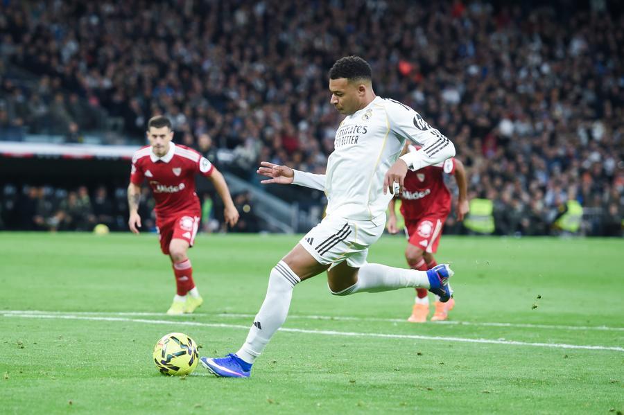 A goal from Jude Bellingham in the first half and a late penalty from Kylian Mbappe gave Real Madrid the win after another uneven display in which Sevilla missed several good chances, while the Santiago Bernabeu crowd at times voiced its frustration.