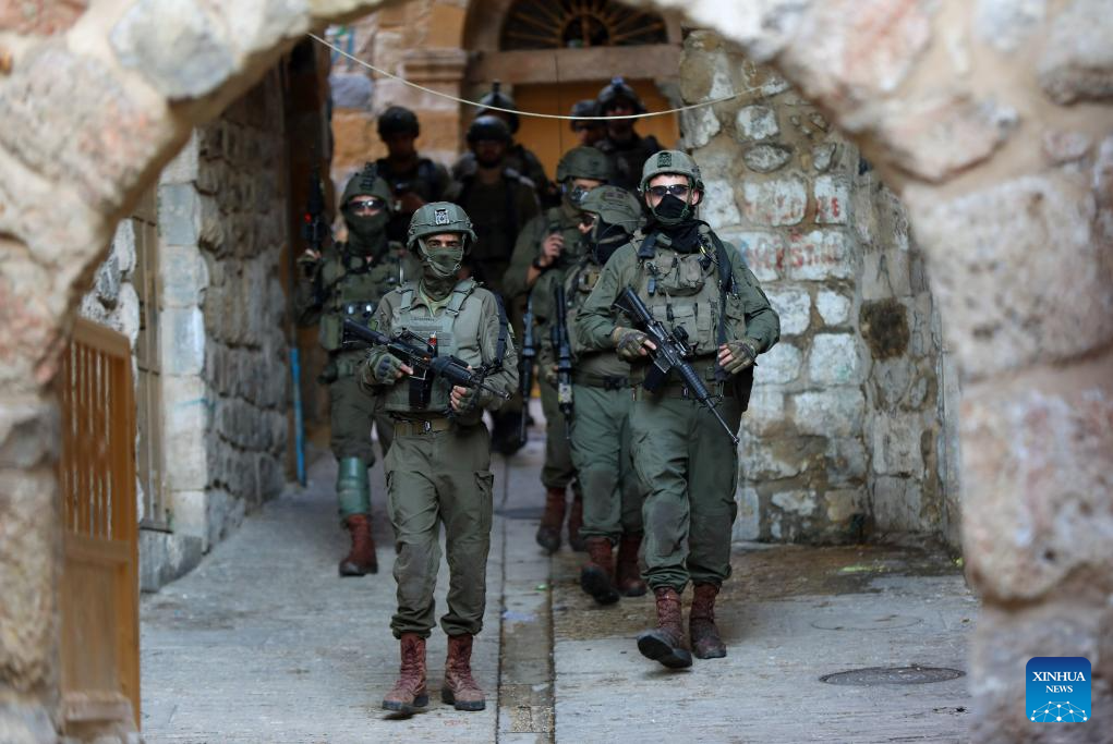 Members of Israeli forces secure the streets for Israeli settlers in the Old City of Hebron in the southern West Bank, on Dec. 20, 2025. (Photo by Mamoun Wazwaz/Xinhua)