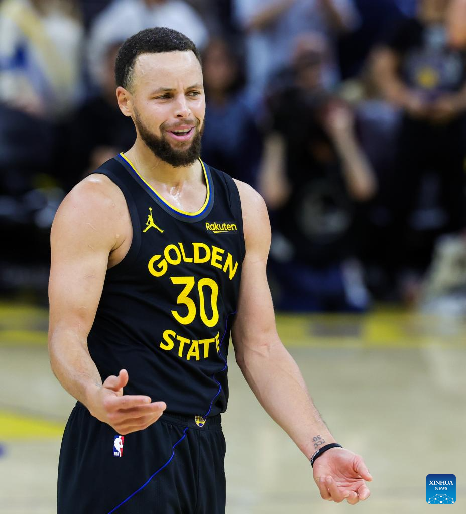 Stephen Curry of Golden State Warriors reacts during the 2025-2026 NBA regular season game between Golden State Warriors and Phoenix Suns in San Francisco, the United States, Dec. 20, 2025. (Photo by Dong Xudong/Xinhua)