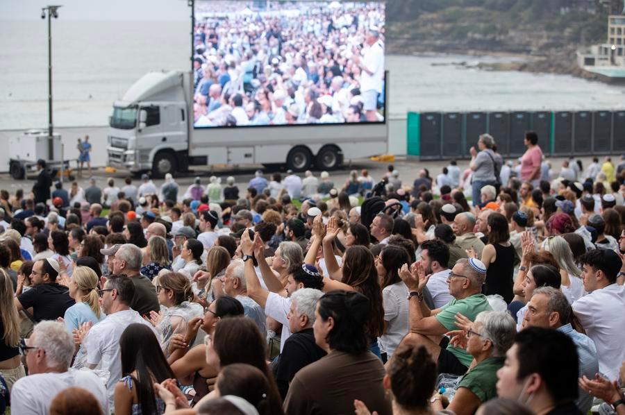 SYDNEY, Dec. 21, 2025 (Xinhua) -- Thousands of people gathered at Sydney's Bondi Beach on Sunday evening to mark one week since a fatal mass shooting claimed the lives of 15 innocent people there.