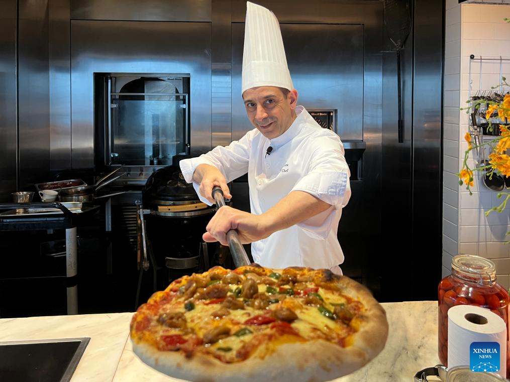CHONGQING, Dec. 21 (Xinhua) -- In the open kitchen of a hotel in southwest China's Chongqing Municipality, the air was thick with the mouth-watering aroma of baking dough and sizzling meat, as executive chef Francesco Sanna was busy preparing his signature creation, the Chongqing Spicy Chicken Pizza.
