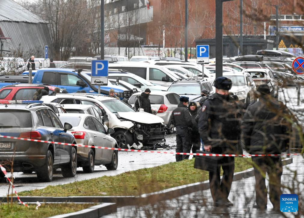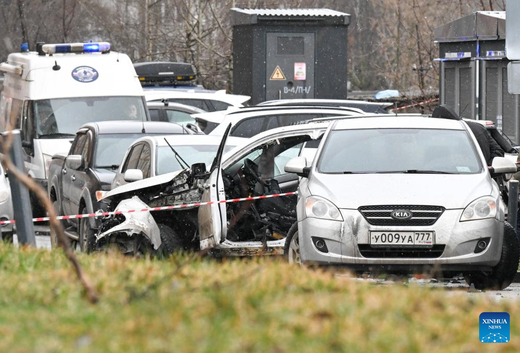 This photo taken on Dec. 22, 2025 shows the car explosion site on Yasenevaya Street in southern Moscow, Russia. Russian Lieutenant General Fanil Sarvarov was killed in a car explosion in Moscow on Monday, the Russian Investigative Committee said. According to the committee, an explosive device was planted under a car and detonated on Yasenevaya Street in southern Moscow on Monday morning. Sarvarov, head of the Operational Training Directorate of the Russian Armed Forces' General Staff, died from injuries. An investigation has been launched into the murder, with authorities examining multiple possible motives, including alleged involvement by Ukrainian special services, it said. (Xinhua/Hao Jianwei)