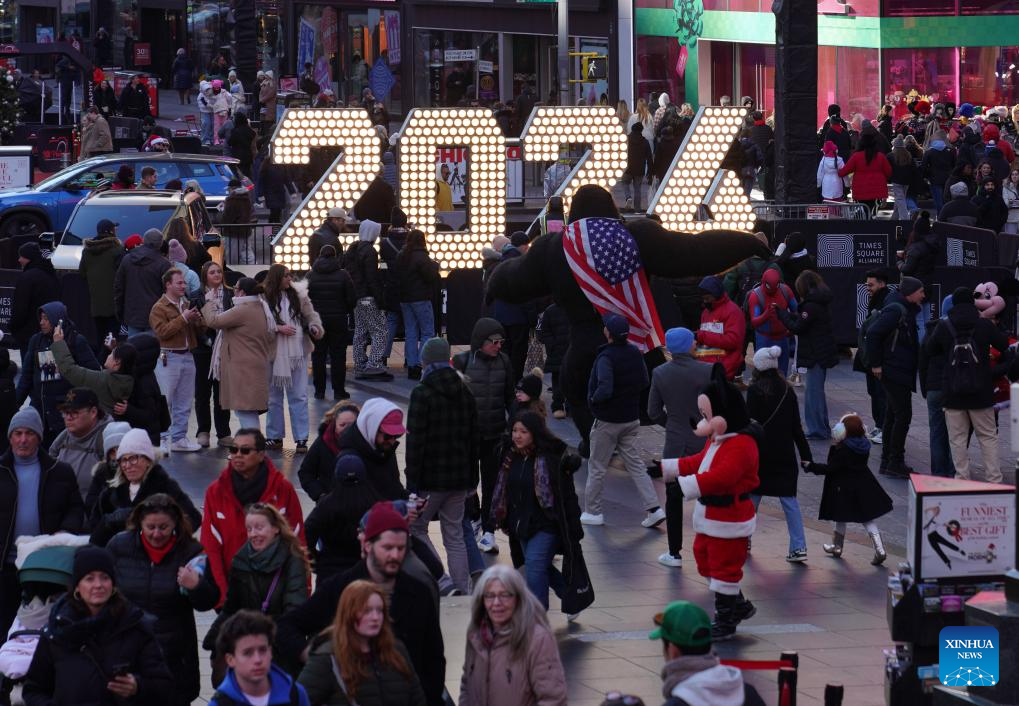 This photo taken on Dec. 22, 2025 shows a light installation for the upcoming 2026 at Times Square in New York, the United States. (Xinhua/Zhang Fengguo)