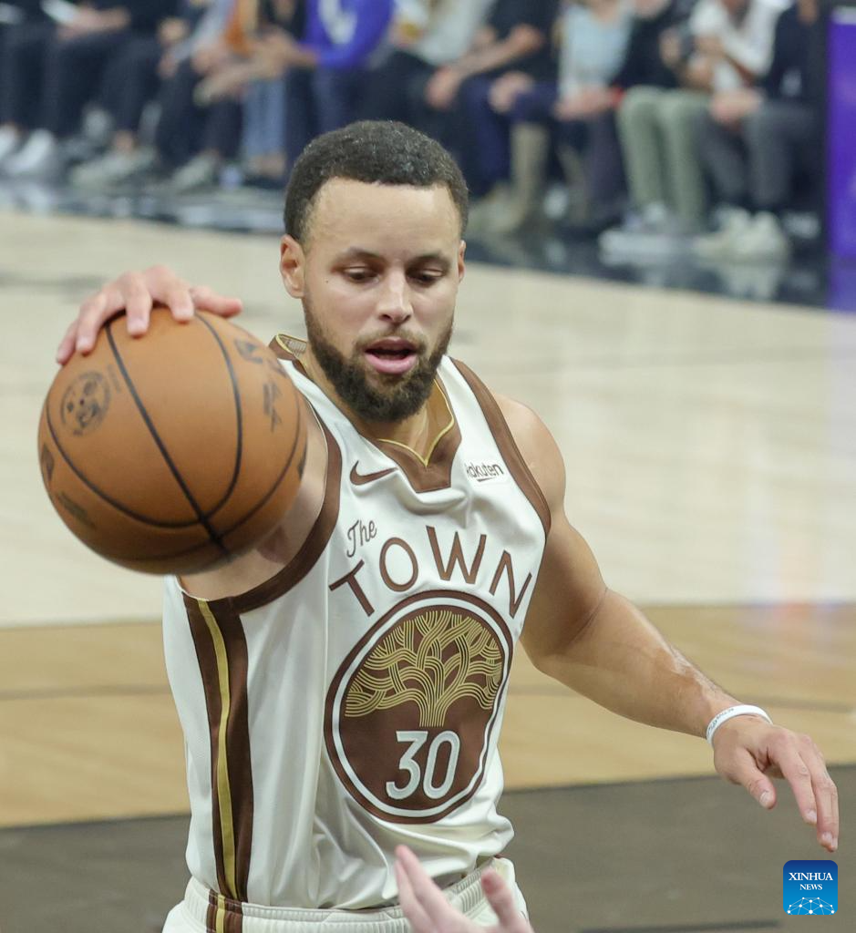 Stephen Curry of Golden State Warriors competes during the 2025-2026 NBA regular season game between Golden State Warriors and Orlando Magic in San Francisco, the United States, Dec. 22, 2025. (Photo by Arthur Dong/Xinhua)