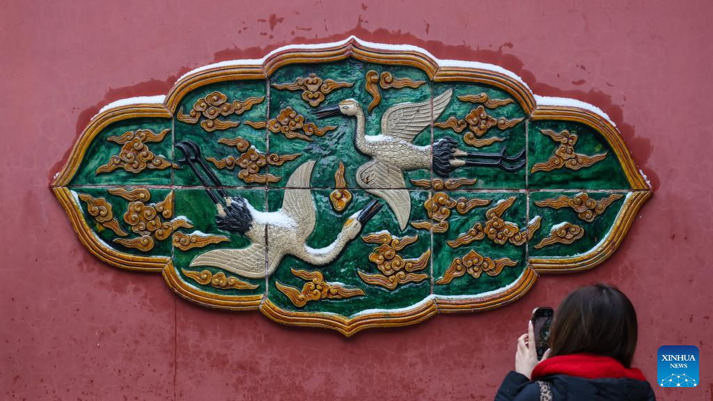 A woman takes photos at Shenyang Palace Museum in Shenyang, northeast China's Liaoning Province, Dec. 23, 2025. (Xinhua/Pan Yulong)