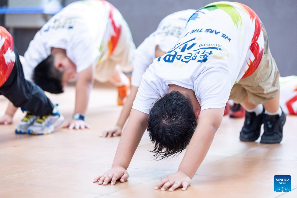 Young people exercise at a weight control camp of a middle school in Huzhou City, east China's Zhejiang Province, July 9, 2025.