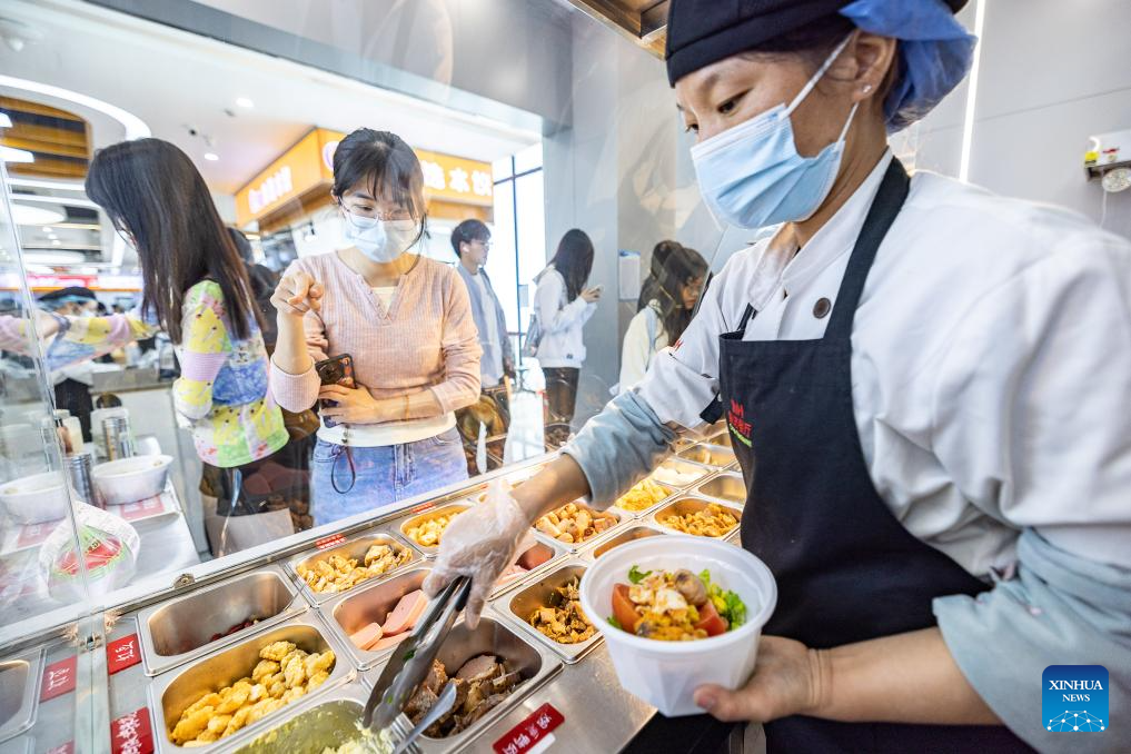 Light meals are provided at a canteen of Huzhou University in Huzhou City, east China's Zhejiang Province, March 25, 2025.