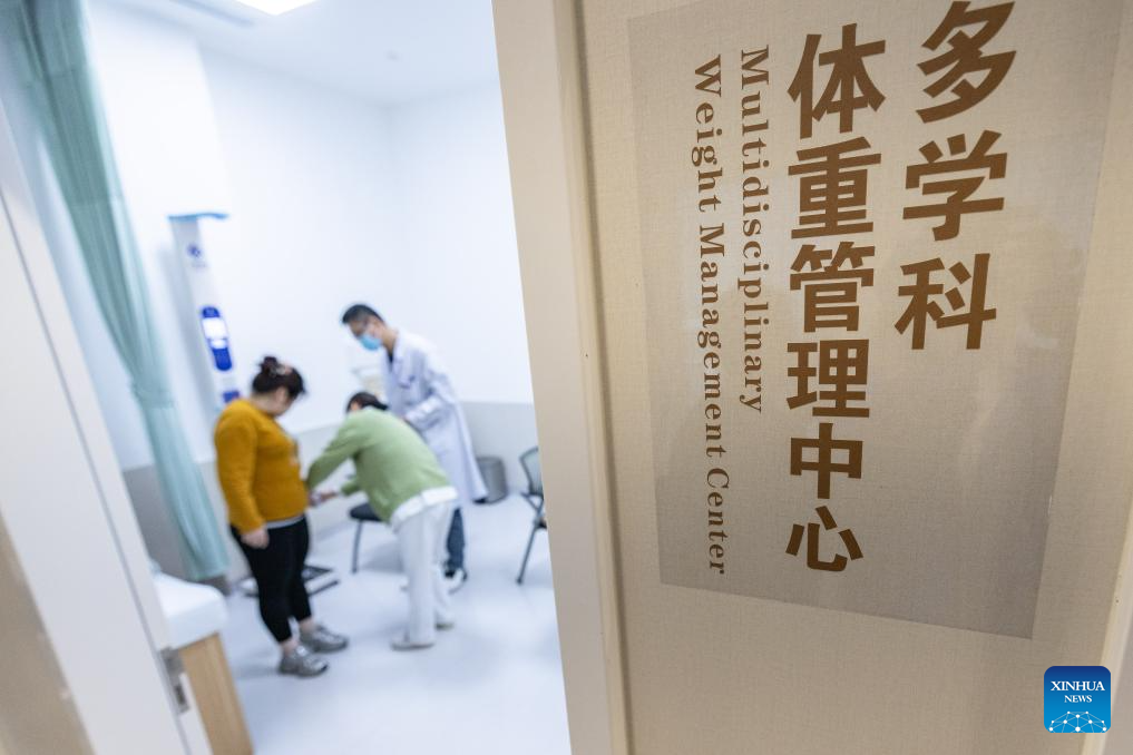 Medical staff measure the physical data of a patient at a weight management center of Huzhou Central Hospital in Huzhou City, east China's Zhejiang Province, March 20, 2025.