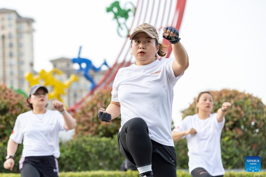 People exercise at Waizhuang Park in Huzhou City, east China's Zhejiang Province, April 14, 2025.
