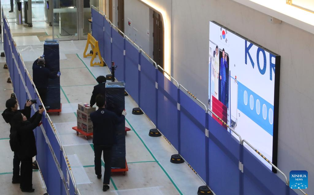 Staff members transport office supplies out of the presidential office in Yongsan, Seoul, South Korea, on Dec. 22, 2025. South Korea's presidential office will officially return to Cheong Wa Dae, which is widely known as the Blue House, at midnight on Dec. 29, Yonhap News Agency reported on Wednesday. (Xinhua/Yao Qilin)