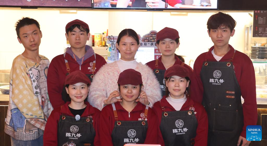 ZHENGZHOU, Dec. 25 (Xinhua) -- Each day at 9:30 a.m., the kitchen of Chenjiuye noodle shop slowly comes to life. Zhonghang and his girlfriend are the first to arrive. He unlocks the door, dons his apron and chef's hat before gathering kitchen utensils from the storage cabinet -- a small, familiar ritual that marks the start of another day.