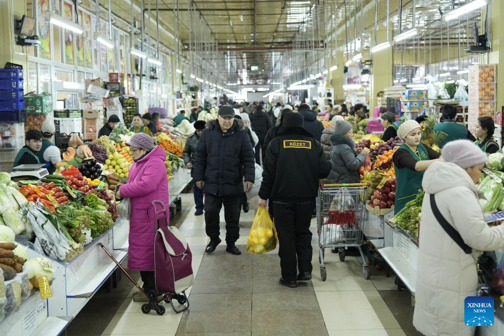 This photo taken on Dec. 26, 2025 shows a farmers' market in Astana, Kazakhstan, on Dec. 26, 2025. (Photo by Kalizhan Ospanov/Xinhua)