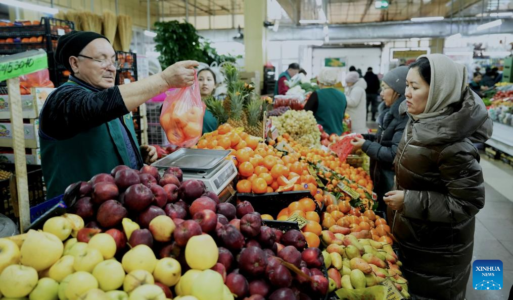 Local residents buy fruits at a farmers' market in Astana, Kazakhstan, on Dec. 26, 2025. (Photo by Kalizhan Ospanov/Xinhua)
