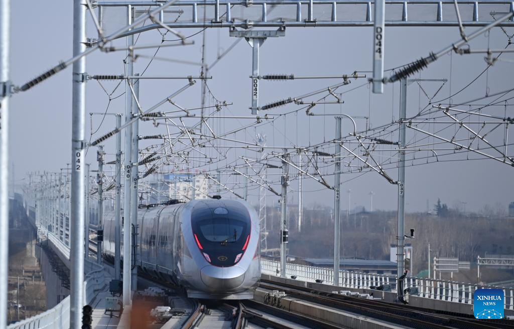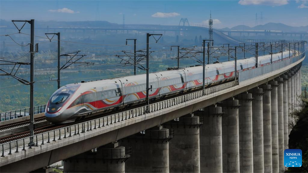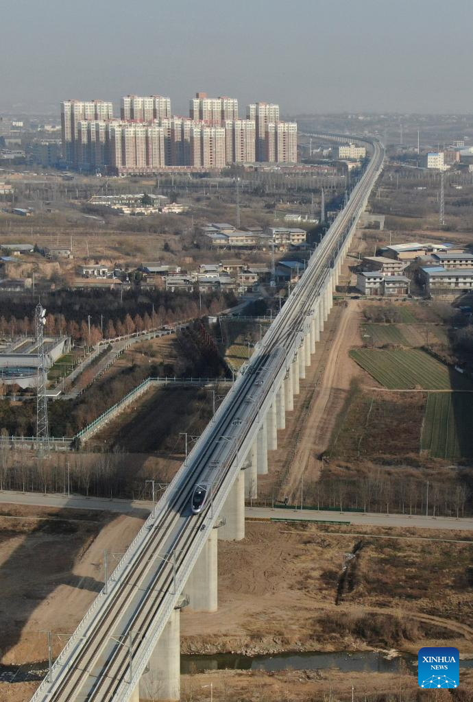 Designed for operations of up to 350 km per hour, the line marked the fastest train running on the Loess Plateau. (Photo by Cao Xin/Xinhua)