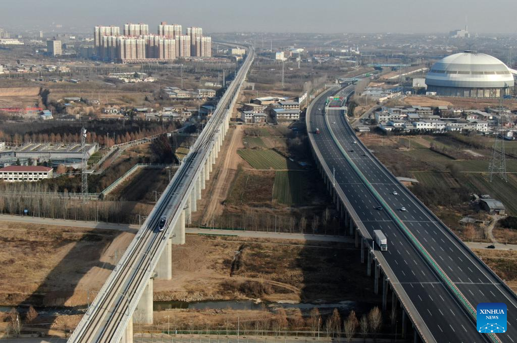 The high-speed rail project started in 2021. Designed for operations of up to 350 km per hour, the line marked the fastest train running on the Loess Plateau.