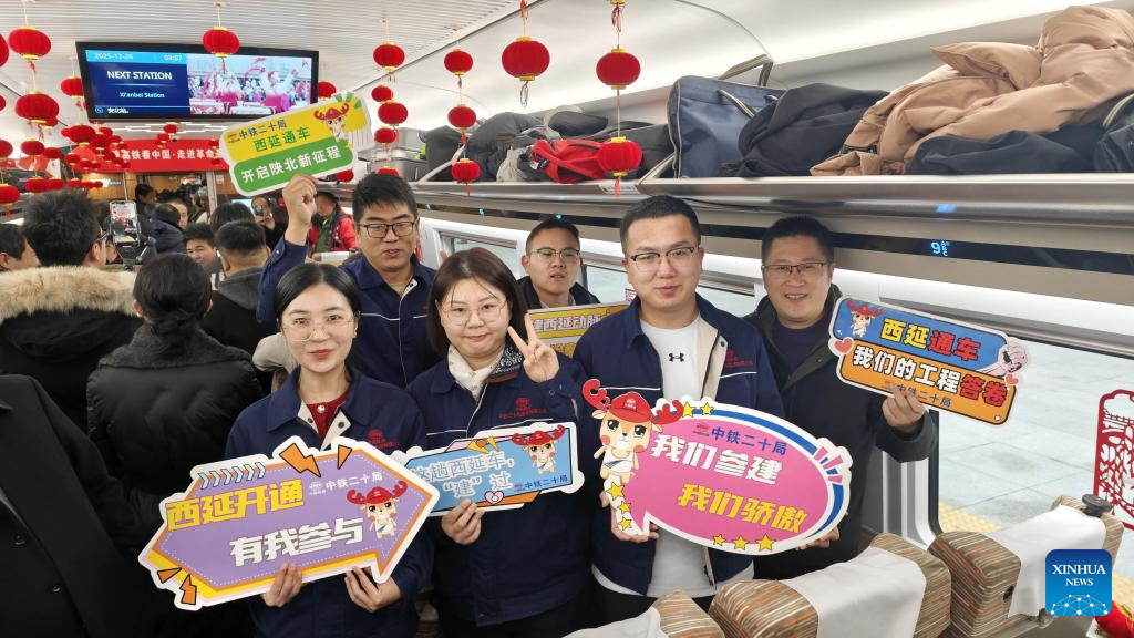 XI'AN, Dec. 26 (Xinhua) -- A sleek silver bullet train departed Yan'an in northwest China's Shaanxi Province on Friday, linking the sacred revolutionary heartland to the country's rapidly expanding high-speed rail network.